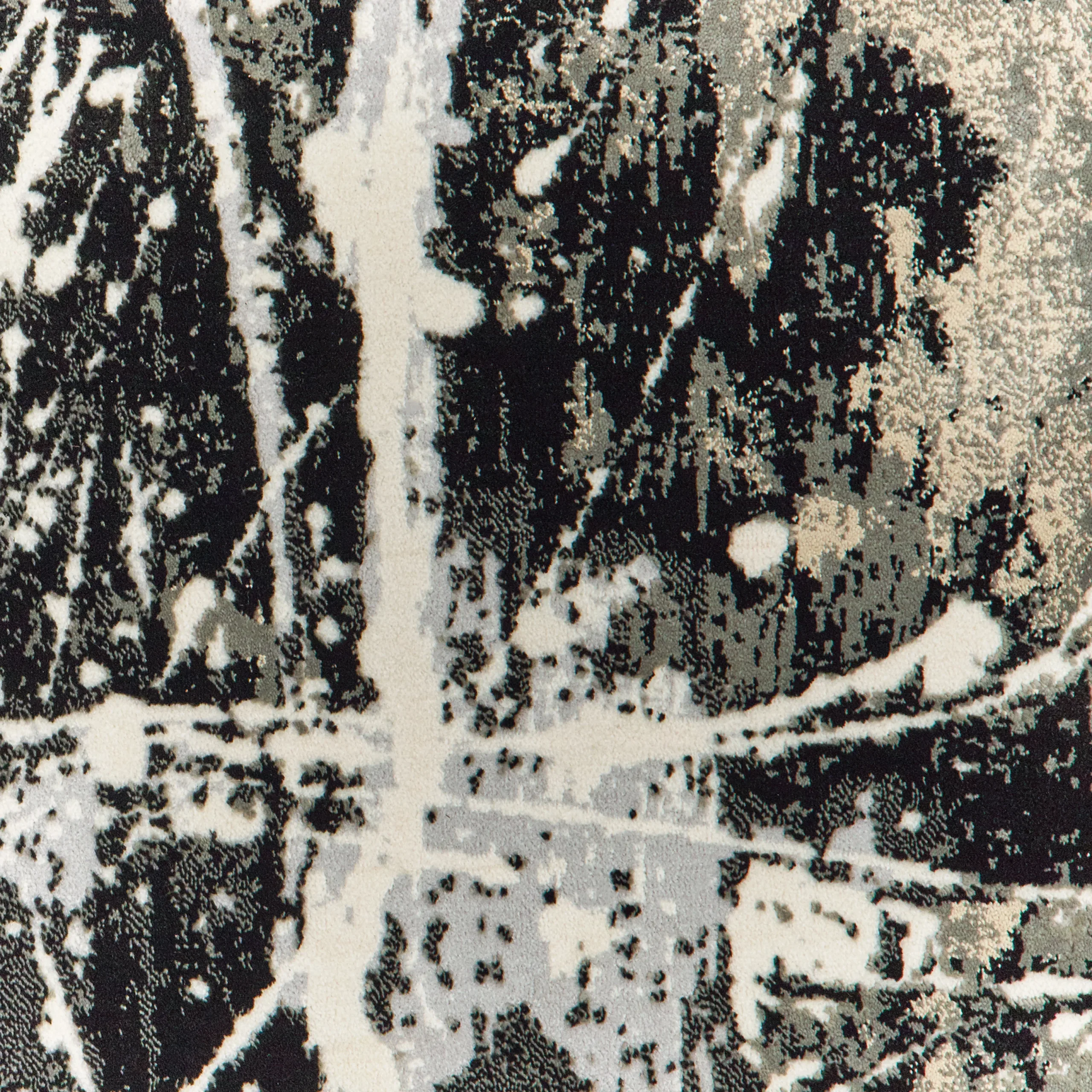 Alfombra tejida a máquina combina fibras de polipropileno y poliéster para ofrecer resistencia, suavidad y fácil mantenimiento. Su patrón abstracto crea un fuerte impacto visual.
