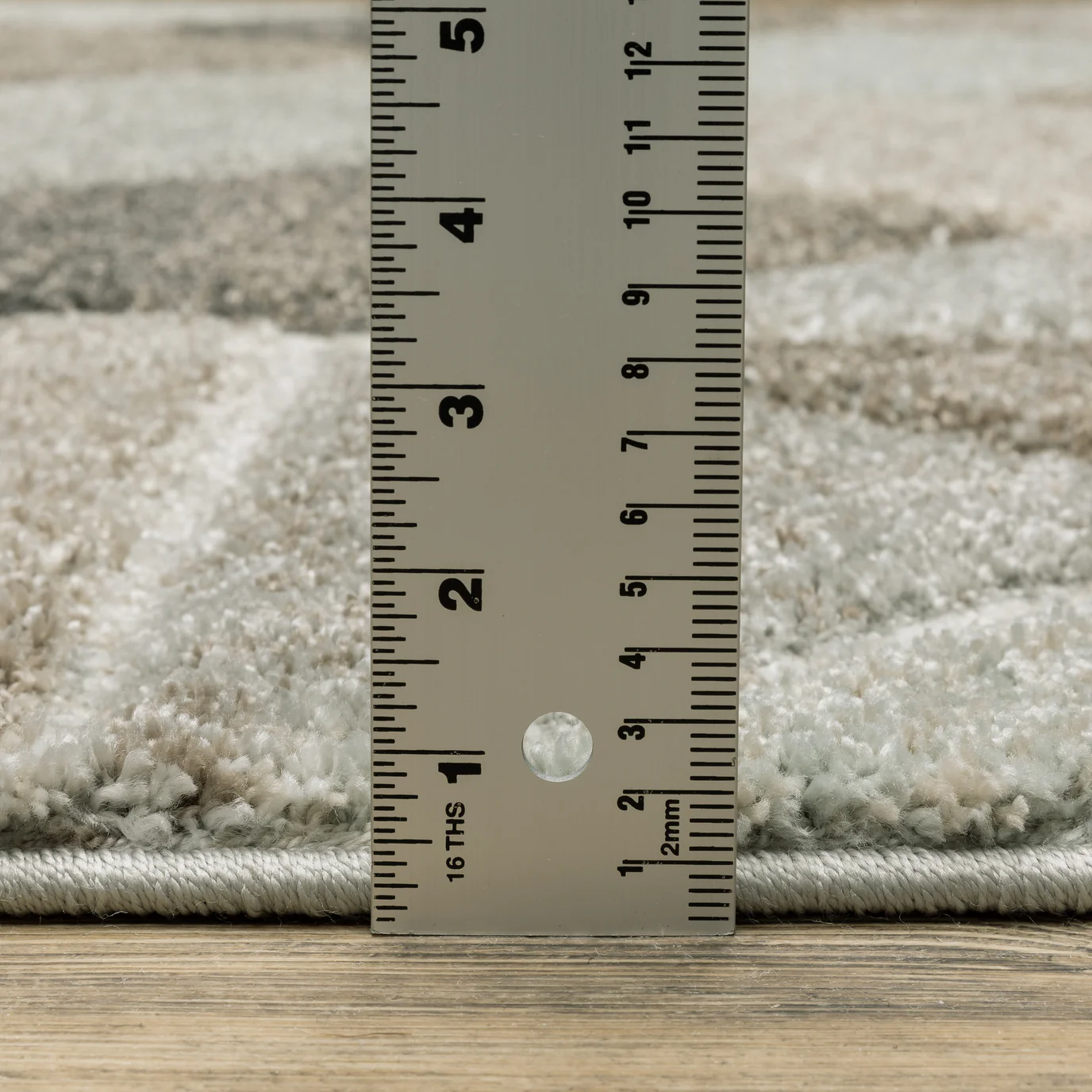 Alfombra de diseño geométrico contemporáneo, con fibra de polipropileno, ideal para uso interior elegante. Sus tonos neutros combinan en formas entrelazadas que aportan profundidad y estilo.