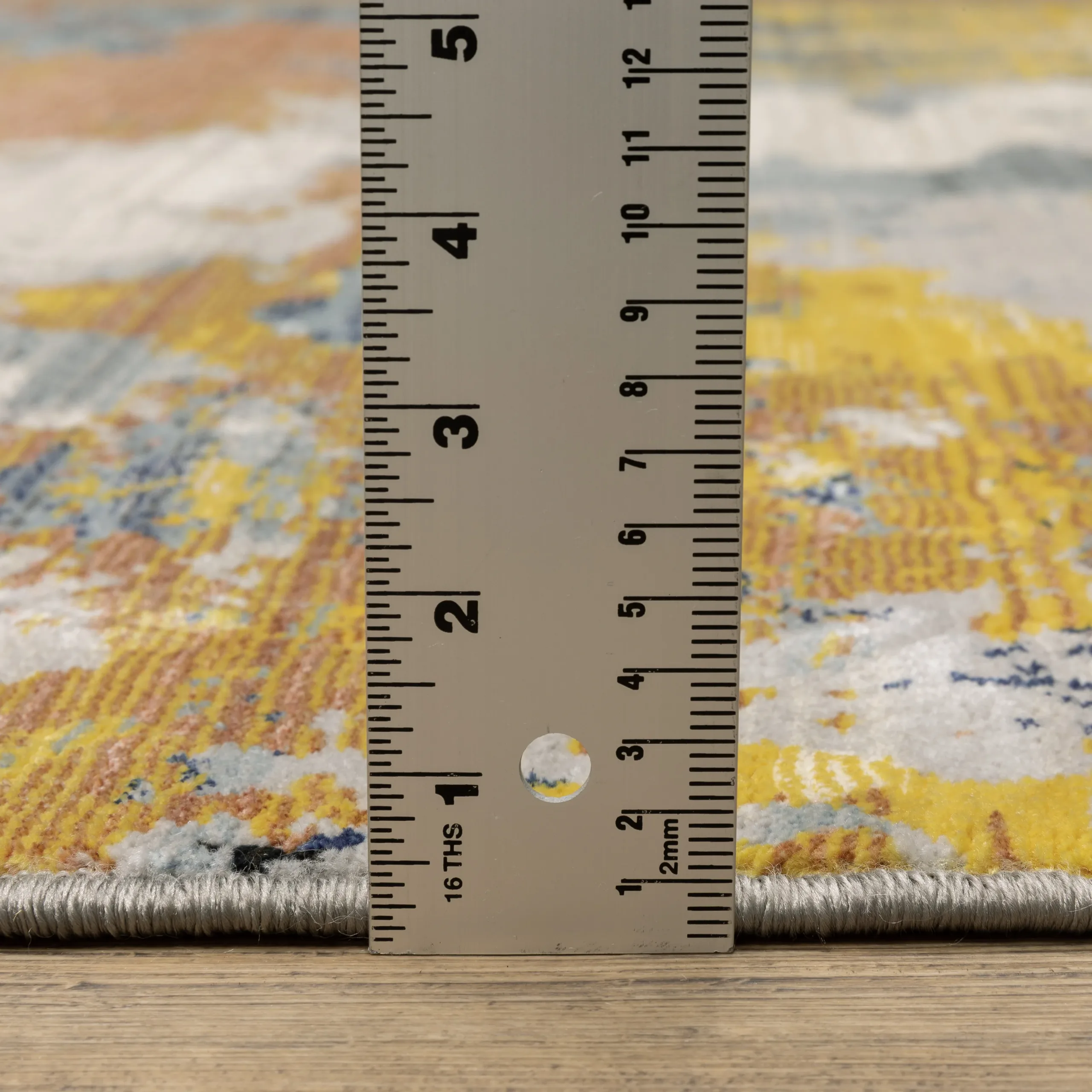 Alfombra para uso interior elaborada en fibra de poliéster, ideal para añadir un toque moderno y vibrante a cualquier espacio.