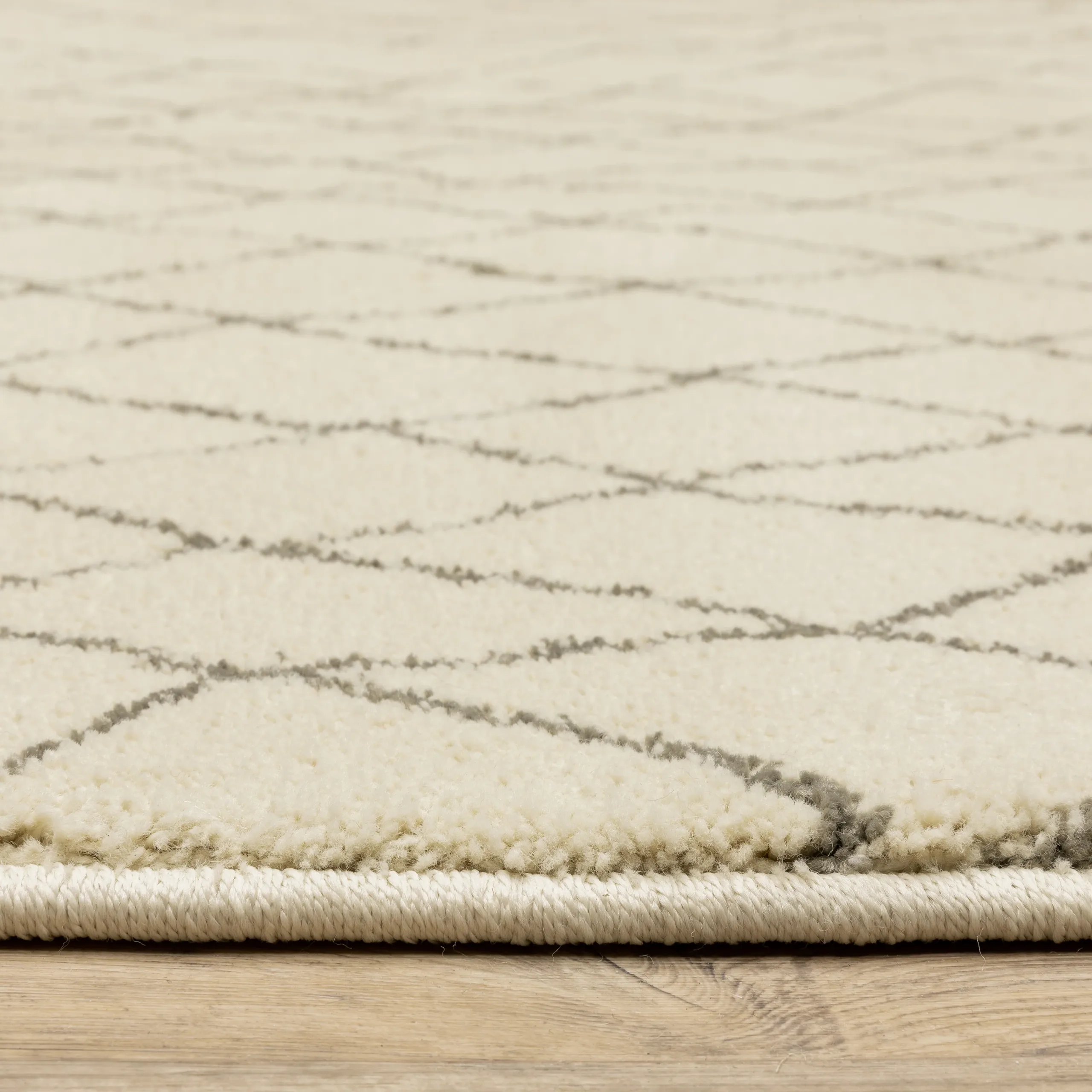 Alfombra tejida a máquina con fibra de polipropileno, ideal para complementar espacios modernos y sofisticados. Su diseño de líneas entrelazadas aporta movimiento visual y un estilo contemporáneo.