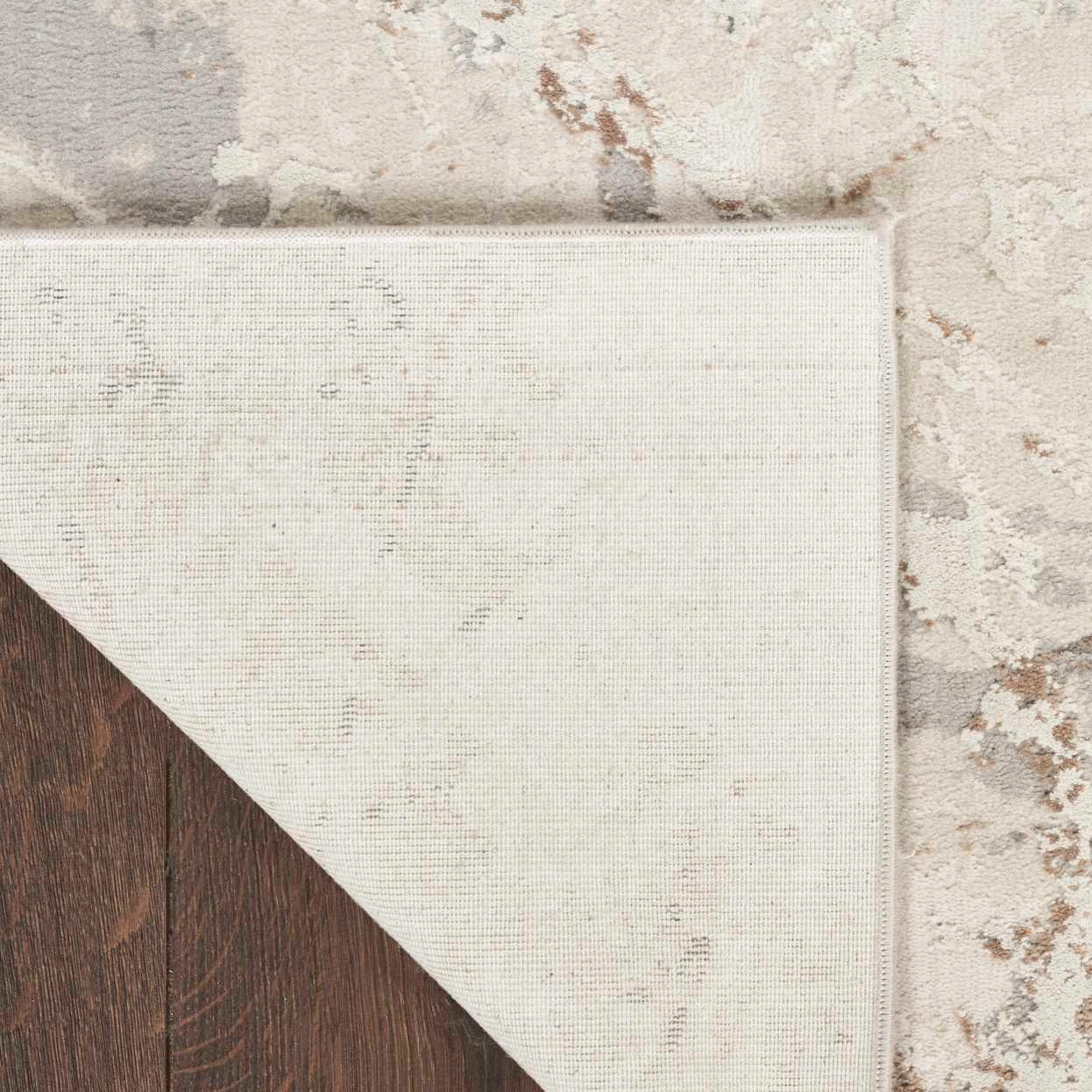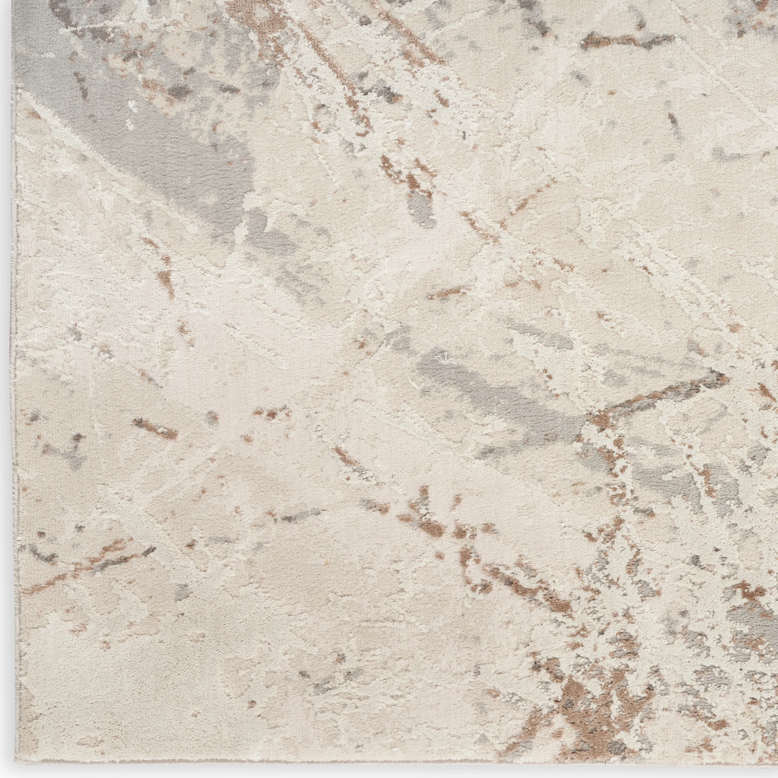 Alfombra de fibra de poliéster, con un diseño abstracto en tonos neutros que aportan elegancia y serenidad al espacio. Su estilo moderno ofrece suavidad, durabilidad y fácil mantenimiento.