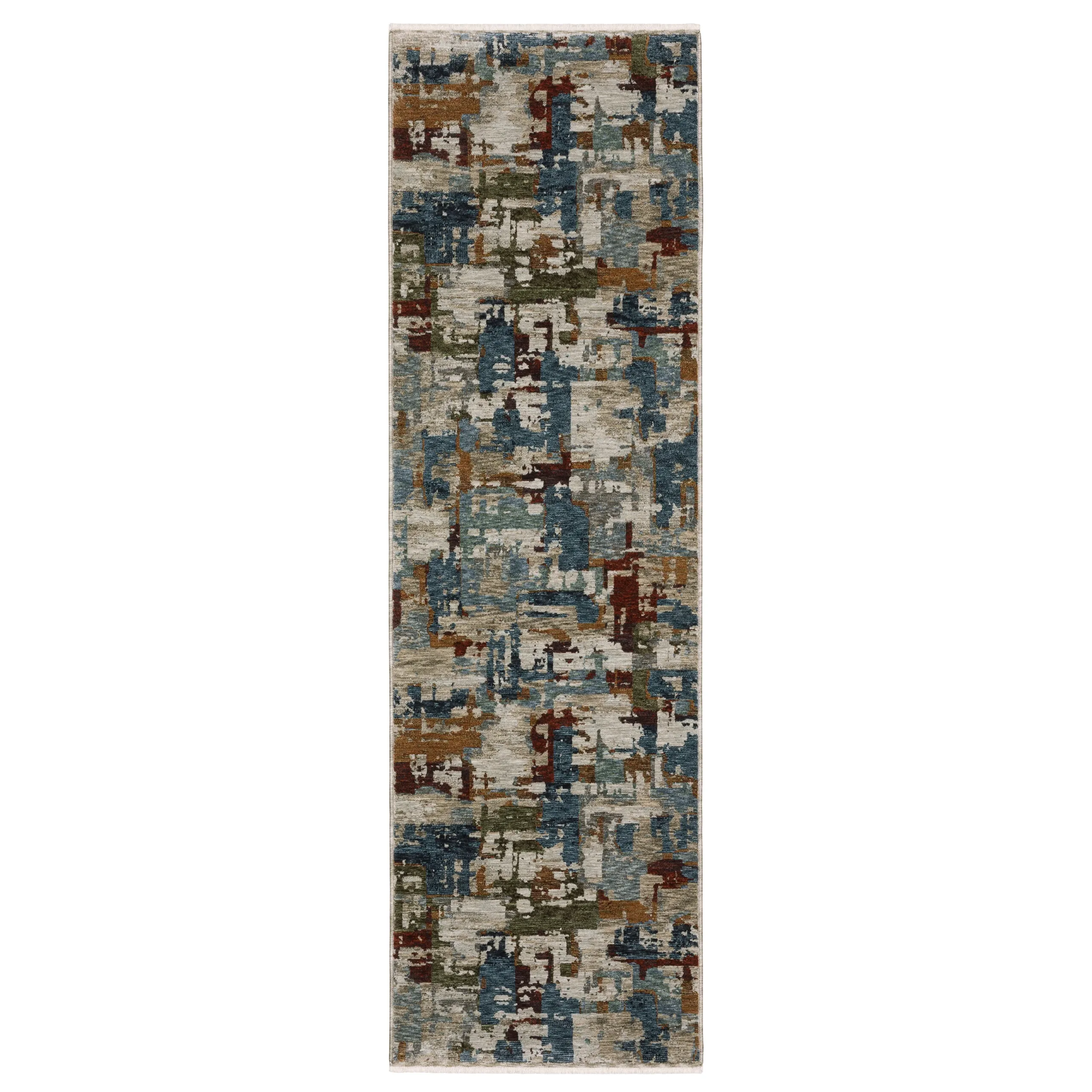 Alfombra de interior, tejida a máquina con fibra de poliéster de alta calidad. Su diseño abstracto combina tonos vibrantes, sobre una base neutra, creando un efecto visual dinámico y elegante.