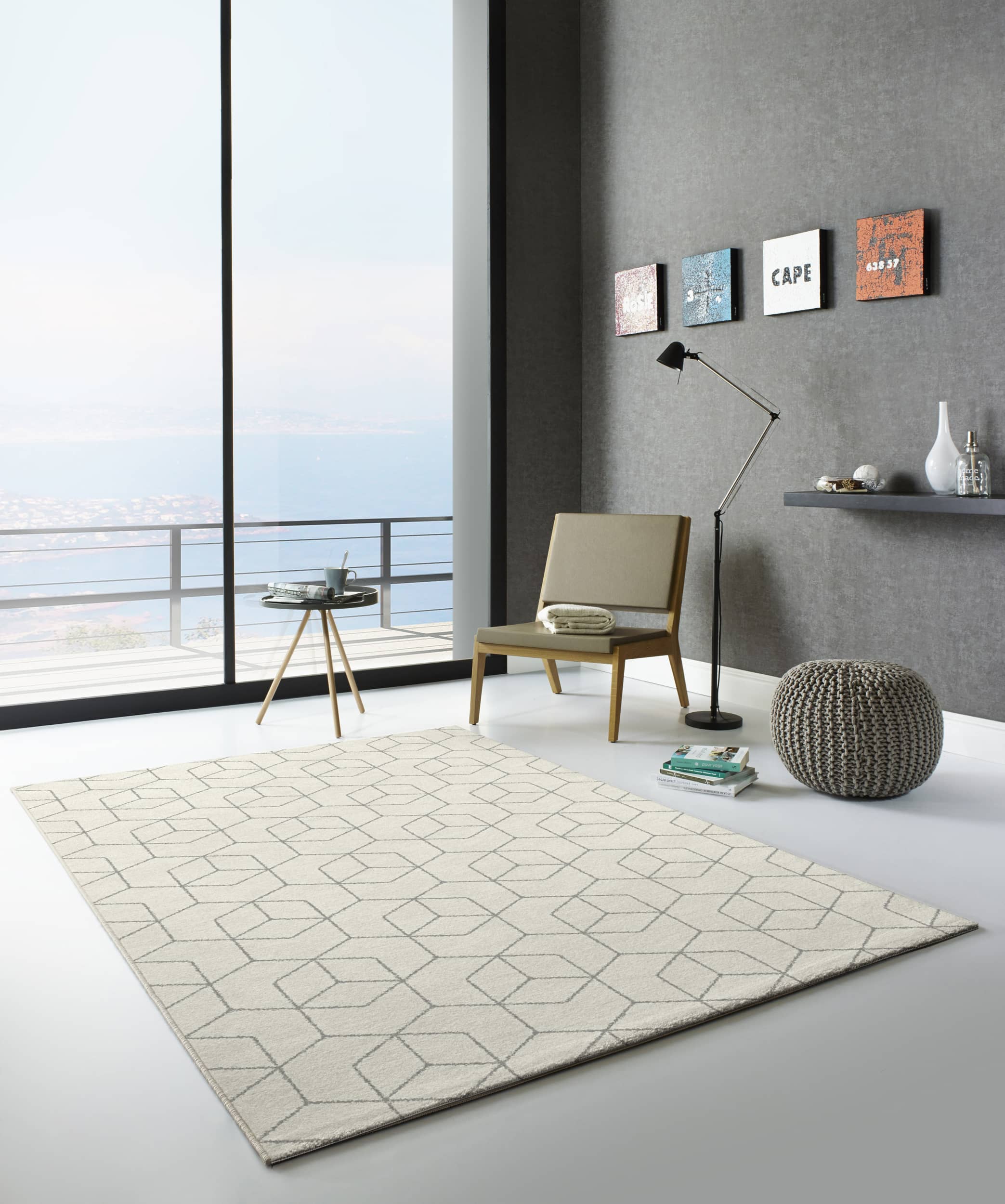 Alfombra de la Colección Montana, presenta un diseño geométrico contemporáneo en tonos neutros, ideal para aportar orden visual y elegancia discreta a espacios modernos.