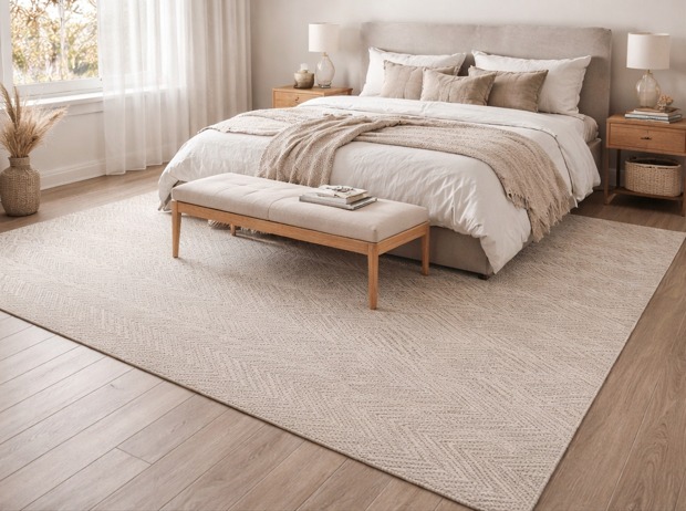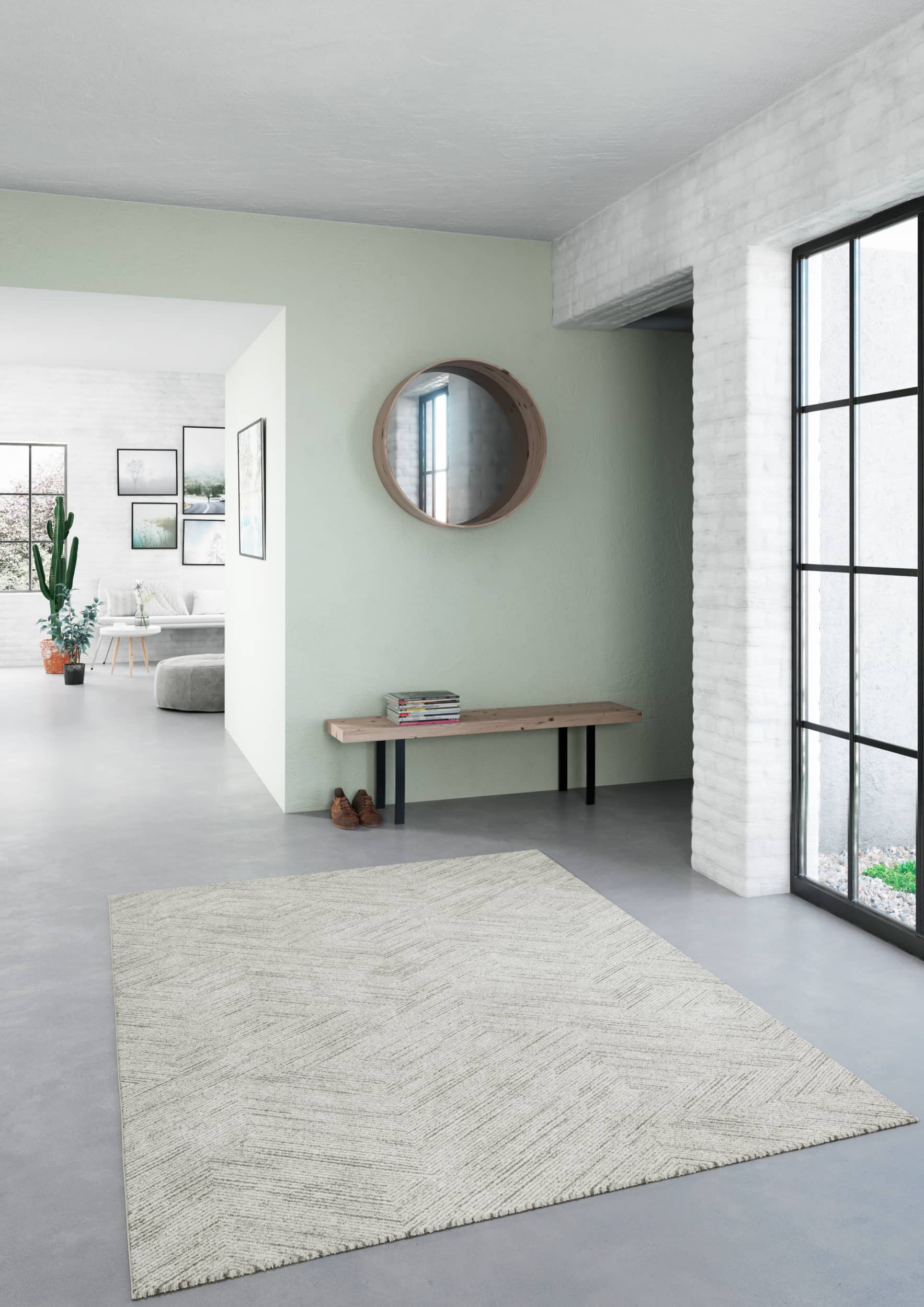 Alfombra de nuestra exclusiva Colección Montana, destaca por su sutil patrón geométrico en tonos neutros, diseñado para integrarse en ambientes contemporáneos. Fabricada en 100% polipropileno.