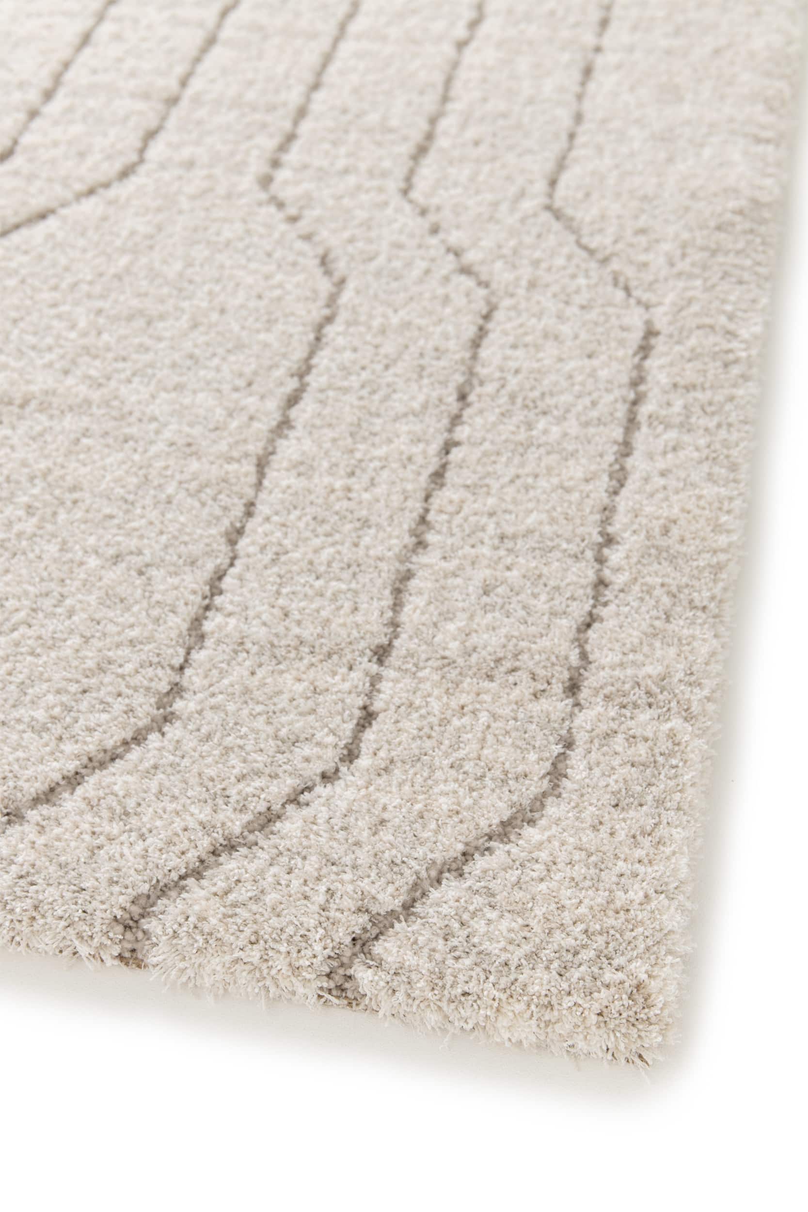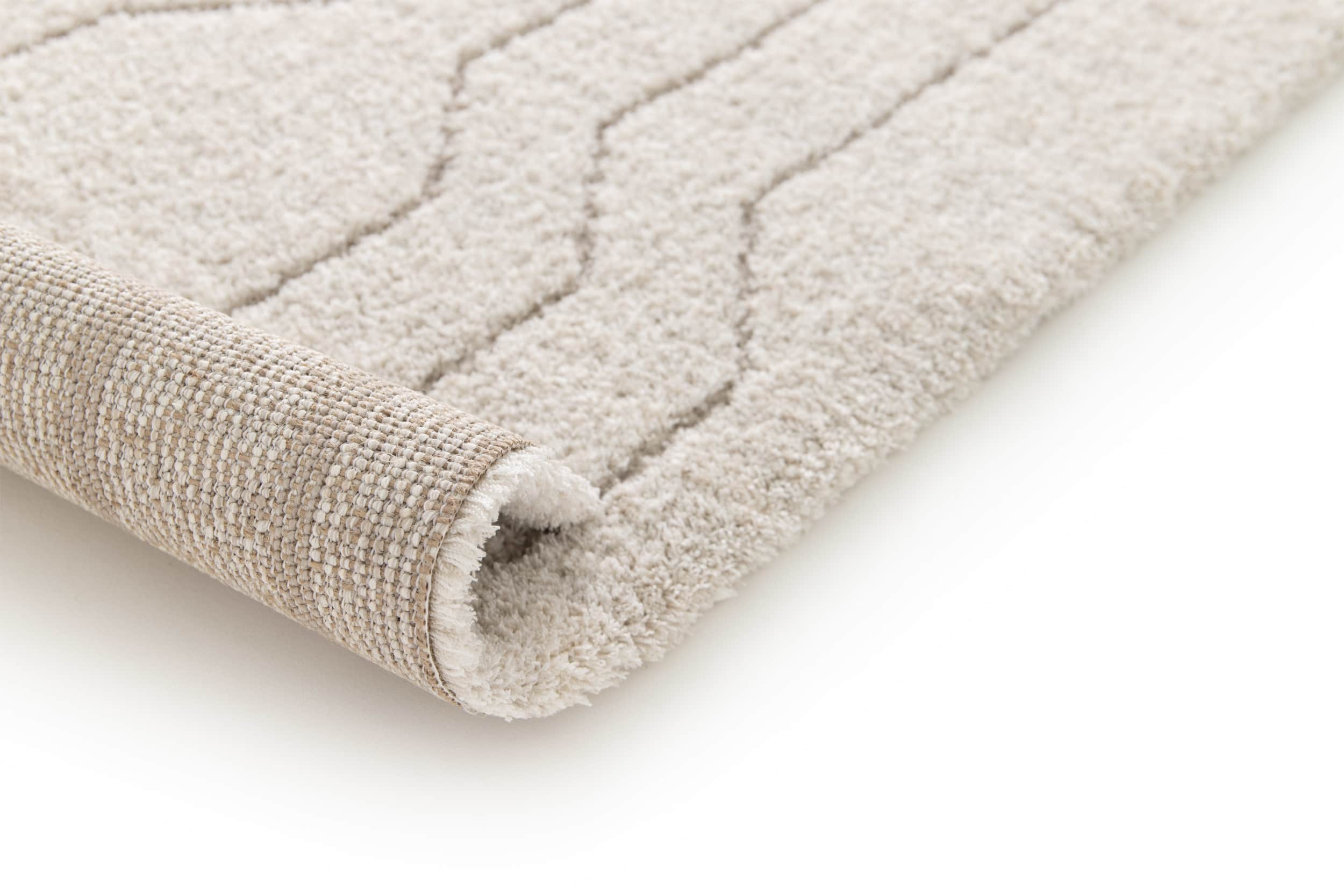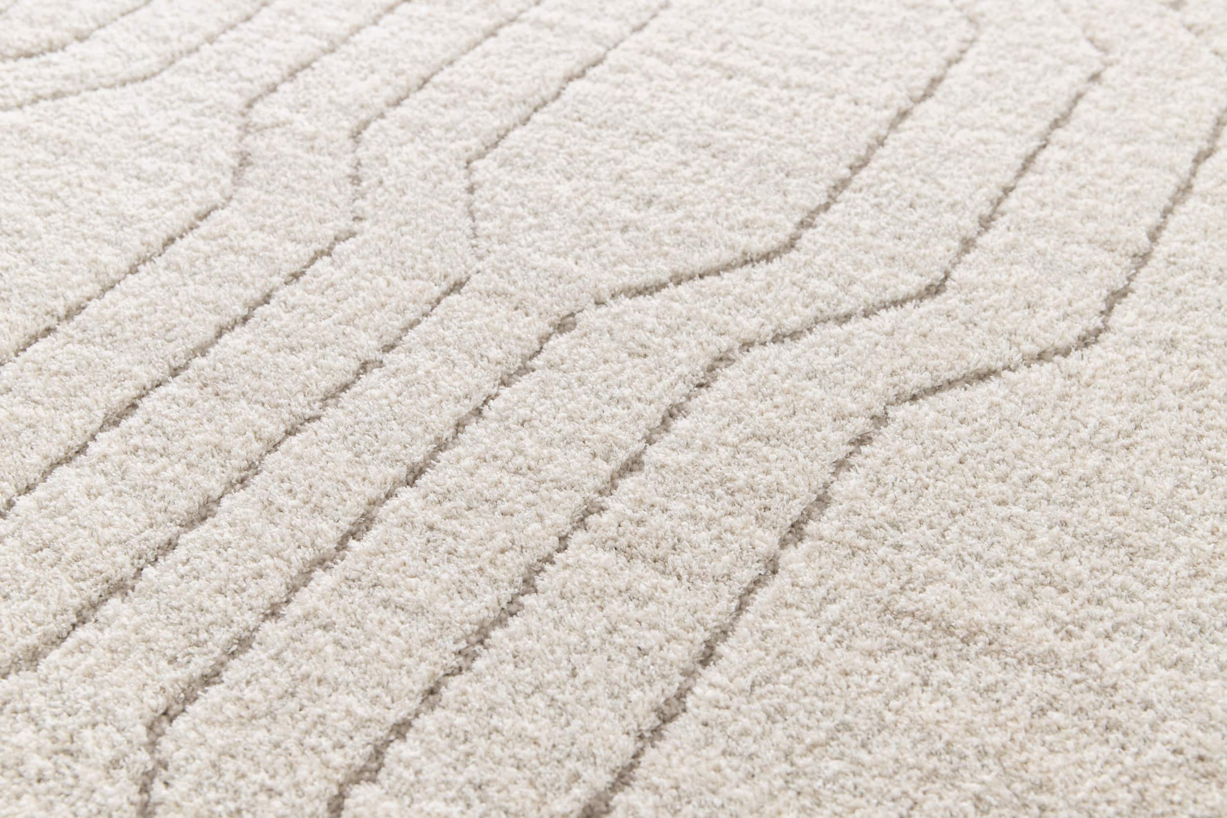 Presenta un diseño moderno con líneas geométricas en relieve que se entrelazan sobre un fondo beige claro, creando un efecto visual elegante y contemporáneo. Su pelo de 14 mm proporciona una pisada confortable, mientras que su composición garantiza propiedades antiestáticas, alta suavidad, durabilidad y ausencia de pelusa. Apta para calefacción por suelo radiante, convirtiéndola en una opción práctica, estilizada y funcional para el hogar.