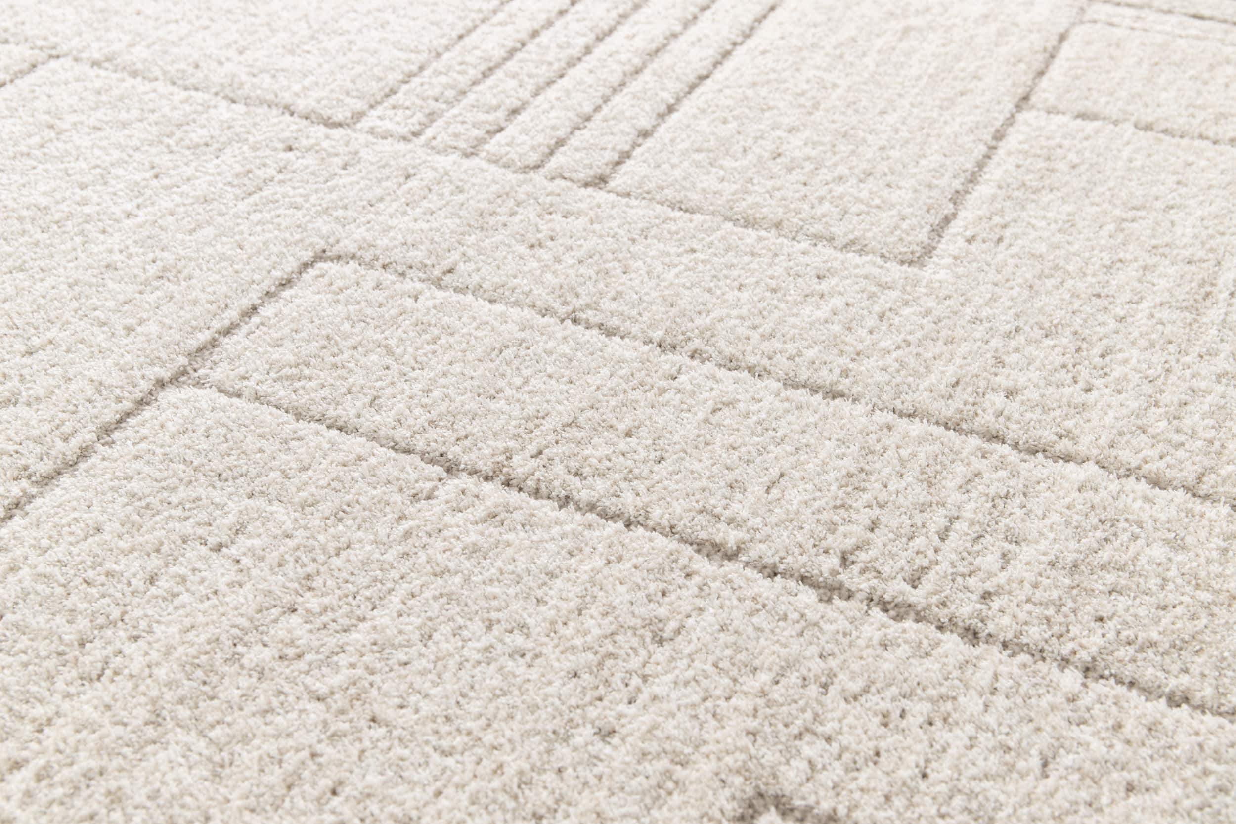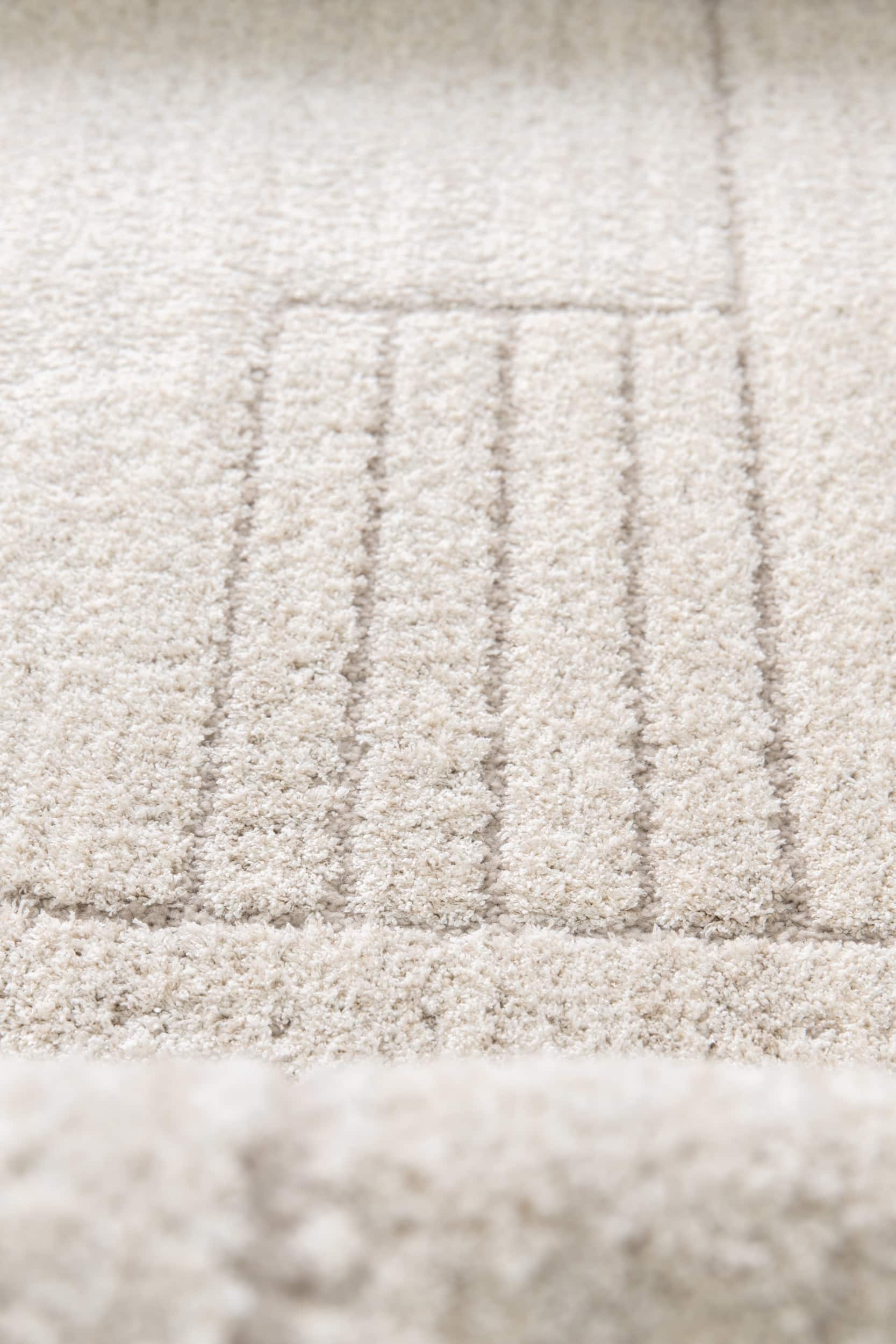 Presenta un patrón geométrico moderno con líneas sutiles y cuenta con una altura de pila de 14 mm, brindando una pisada suave y confortable. Entre sus características destacan su comportamiento antiestático alto bajo y hilo multicolor, ideal para mantener un ambiente limpio. Con un acabado peludo que no requiere overlock, siendo una excelente opción para salas, dormitorios u oficinas que busquen un toque cálido.