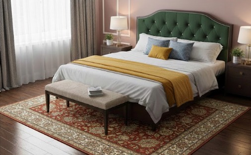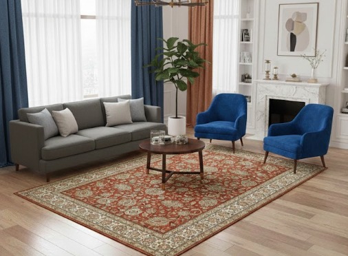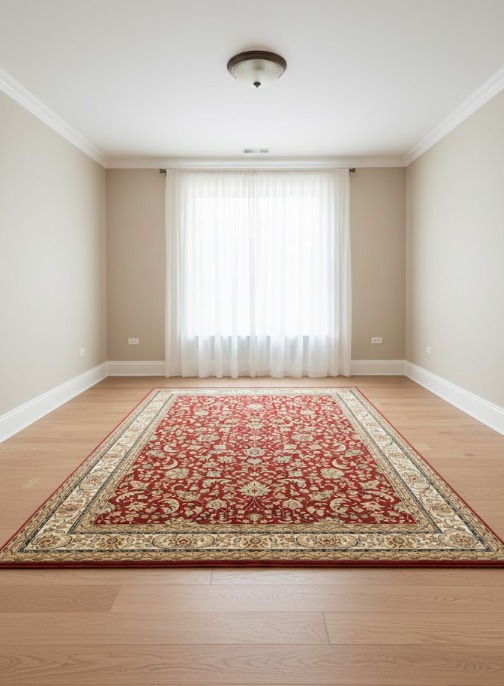 Ornamentado con intrincados patrones florales en crema y dorado, evoca un aire de realeza y atemporalidad que se adapta perfectamente tanto a ambientes clásicos como a oficinas ejecutivas. Gracias a su fibra de polipropileno, esta pieza es fácil de limpiar, manteniendo su vibrante color y textura a pesar del paso del tiempo y el uso diario.
